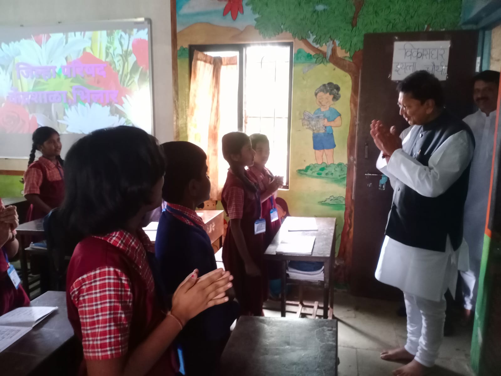शालेय शिक्षण मंत्री श्री.दीपक केसरकर साहेब यांची भिलार शाळेस भेट विद्यार्थ्यांशी साधला संवाद