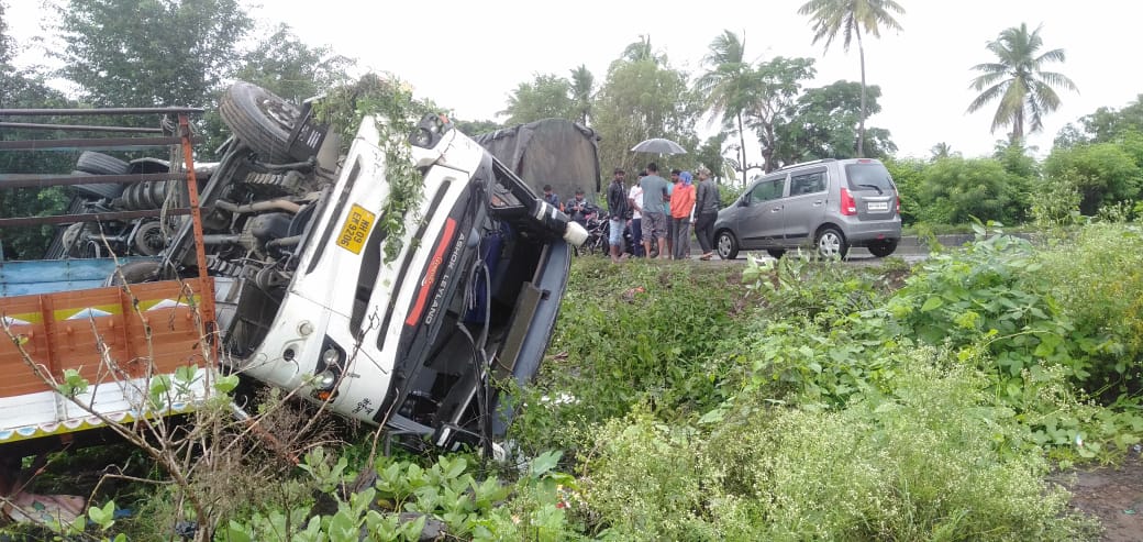 रामकृष्णनगर येथे पलटी झालेली शिवशाही नागठाणे येथे खड्यात गेलेली लालपरी