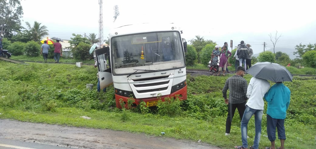याच दरम्यान कराड ते सातारा लेनवर नागठाणे गावच्या हद्दीत कार चालकाने अचानक ब्रेक दाबल्याने एसटी चालकाचा चालकाचा ताबा सुटल्याने एसटी बस महामार्ग नजीकच्या नाल्यात गेली. या बसमध्ये वीस प्रवासी होते.मात्र सुदैवाने कोणीही जखमी झाले नाही.या दोन्ही अपघाताची माहिती मिळताच हायवे पेट्रोलिंग हेल्पलाइन इन्चार्ज दस्तगीर आगा, बोरगाव पोलीस ठाण्याचे सहाय्यक फौजदार विजय देसाई,श्री. घाडगे, हवलदार प्रकाश वाघ तसेच जनता अंब्युलेन्सचे अब्दुल सुतार,सोहेल सुतार,आजीम सुतार,समीर केंजळे तात्काळ घटनास्थळी दाखल झाले व शिवशाही बस अपघातातील जखमींना उपचारासाठी नागठाणे येथे पाठवले.या दोन्ही अपघातांमुळे महामार्गावरील वहातुक काही काळ विस्कळीत झाली होती.