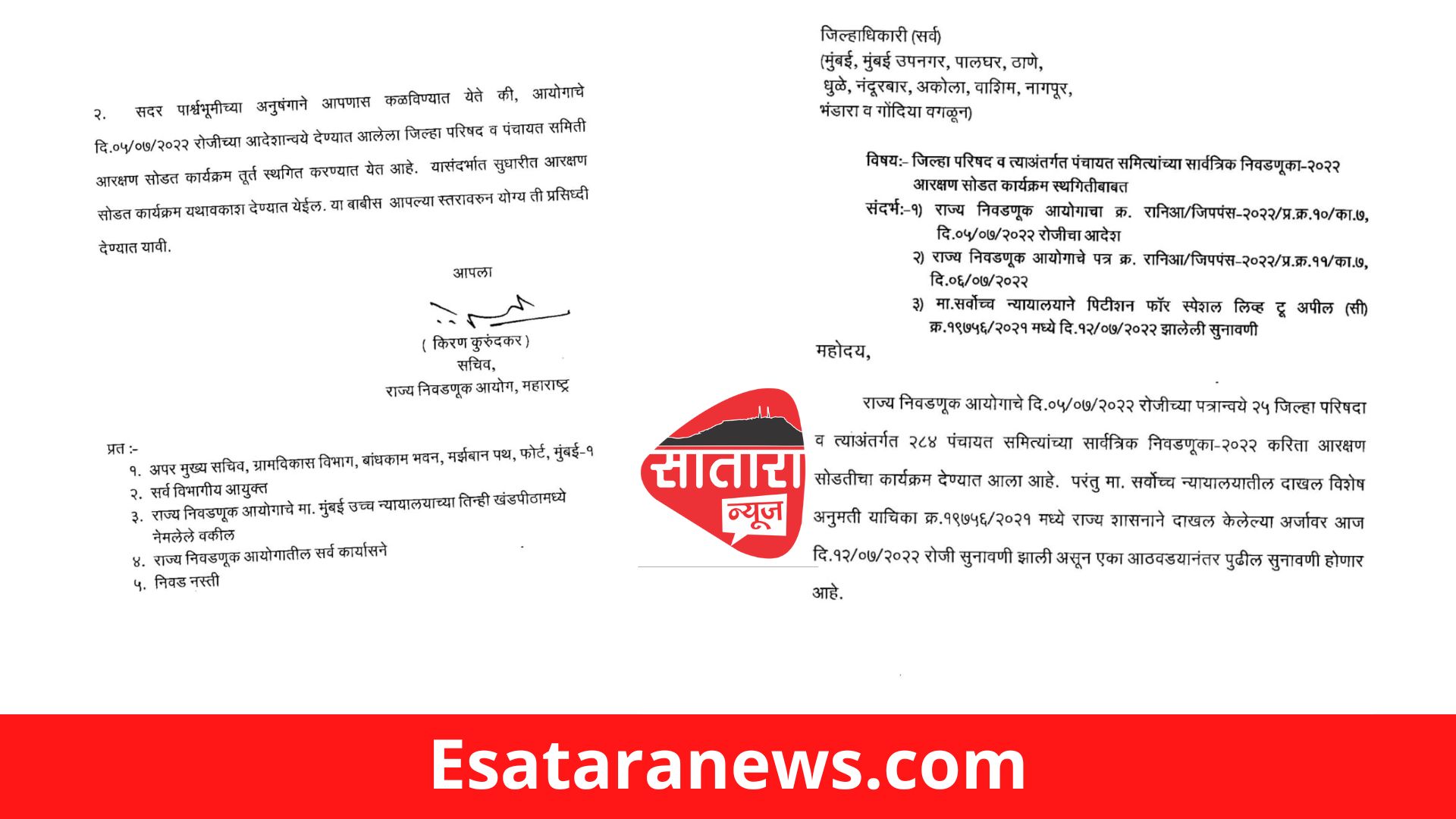 Braking उद्या होणारी सातारा जिल्हा परिषद पंचायत समिती आरक्षण सोडत रद्द